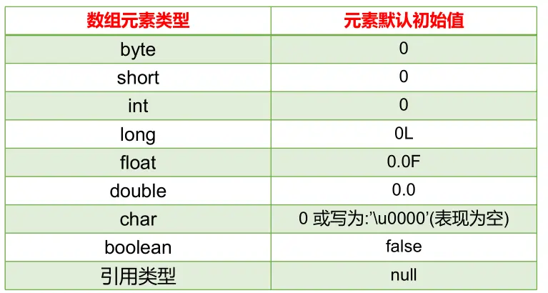 - 引用数据类型元素的数组:每个元素位置存储对象(本质是存储对象的首地址)(在面向对象部分讲解)