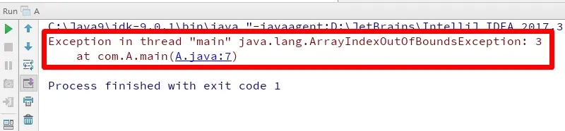 // System.out.println("最后一个元素:" + arr[3]);//错误,下标越界